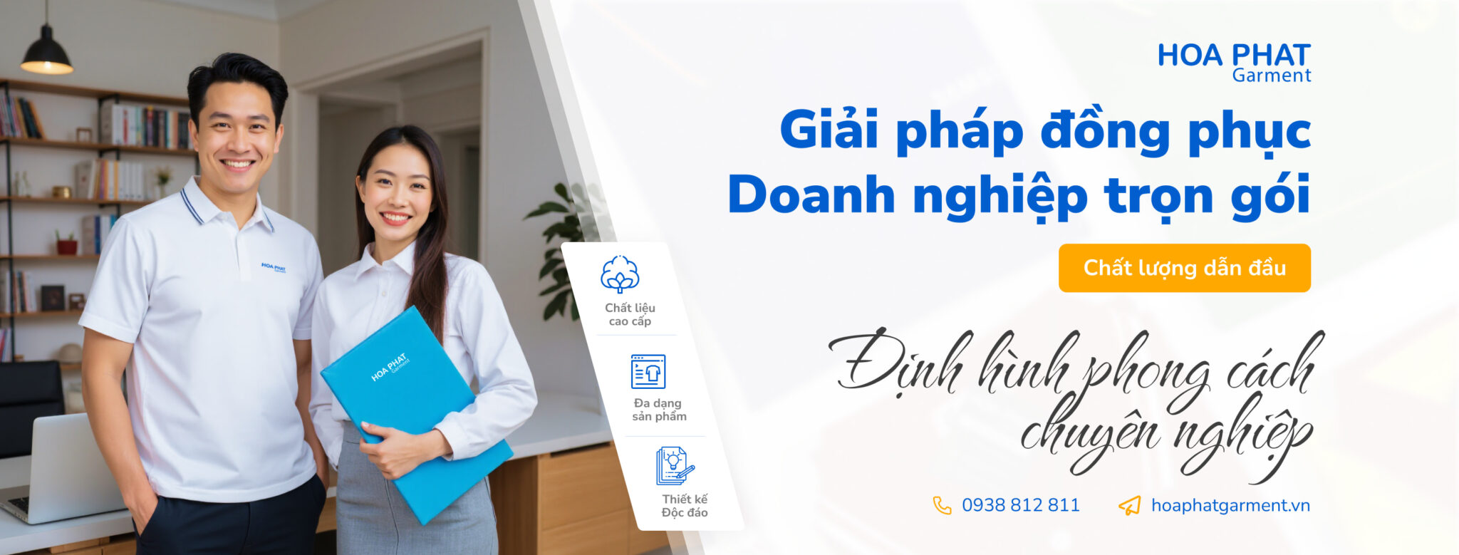 Hoa Phat Garment là công ty may đồng phục tại TP.HCM, sở hữu xưởng sản xuất trực tiếp 2.000m² và hệ thống in ấn hiện đại. Chúng tôi cung cấp giải pháp đồng phục trọn gói với chất lượng cao, giá thành tối ưu cho doanh nghiệp.